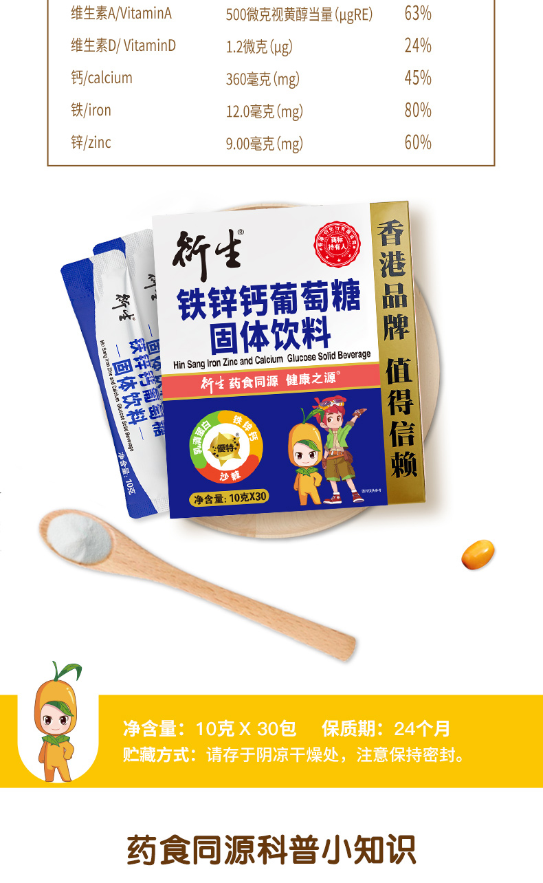 衍生铁锌钙葡萄糖固体饮料